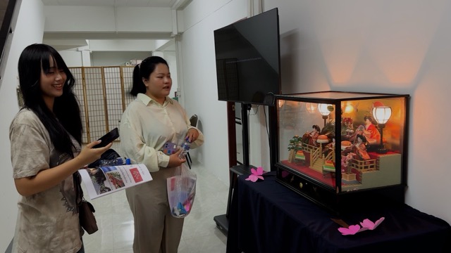 การจัดแสดงตุ๊กตาฮินะของจริง เราได้นำตุ๊กตาฮินะ (Hina Dolls) ที่มีความสวยงามและประณีตมาจัดแสดงภายในห้องเรียน นักเรียนหลายคนตื่นตาตื่นใจกับความงดงามที่เพิ่งเคยเห็นเป็นครั้งแรก ต่างพากันถ่ายรูปและพินิจพิจารณาความละเอียดของเครื่องแต่งกายอย่างใกล้ชิด